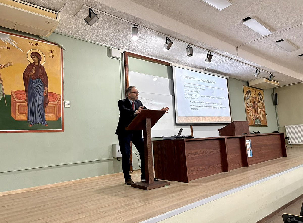 Vom 15.03.-19.03.2026 fand an der (orthodox-) theologischen Fakultät der Universität Thessaloniki / Griechenland die ERASMUS WEEK 26 statt, auf der Prof. Lutz im Rahmen eines ERASMUS-Lehraustausches mit mehreren Vorträgen und Diskussionsrunden aktiv beteiligt war und viele neue Forschungs- und Kooperationspartner aus Ost-, Mittel und Südeuropa kennenlernen durfte. Es laufen bereits Planungen für weitergehende Kooperationen und Austauschformate auf dem Feld der Theologischen Ethik.